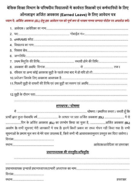 Home2024Novemberफॉर्मेट : बेसिक शिक्षा विभाग, Earning Leave (EL) का फॉर्मेट यहाँ से करें डाउनलोड…EL-FORMAT-.pdf EL-FORMAT-.pdf Leave a Comment / By Editor / November 11, 2024 WhatsApp Channel Join Now WhatsApp Group Join Now Telegram Channel Join Now