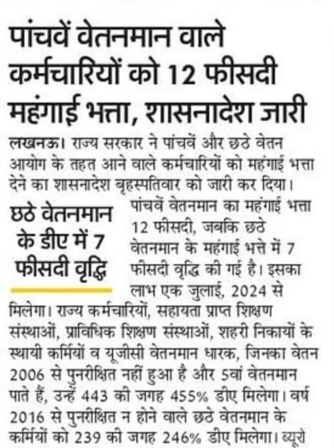 राज्य सरकार ने गुरुवार को पांचवें और छठे वेतन आयोग के तहत आने वाले कर्मचारियों को महंगाई भत्ता (डीए) देने का शासनादेश जारी किया है।