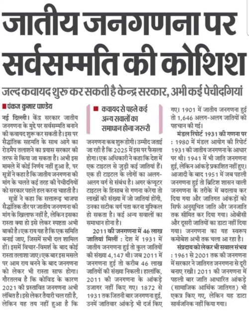 ### **जातीय जनगणना: सर्वसम्मति बनाने की कवायद शुरू, सरकार ने दिए संकेत**