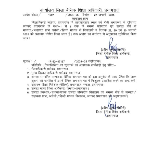 इस जिले में मौनी अमावस्या का अवकाश घोषित, देखें आदेश