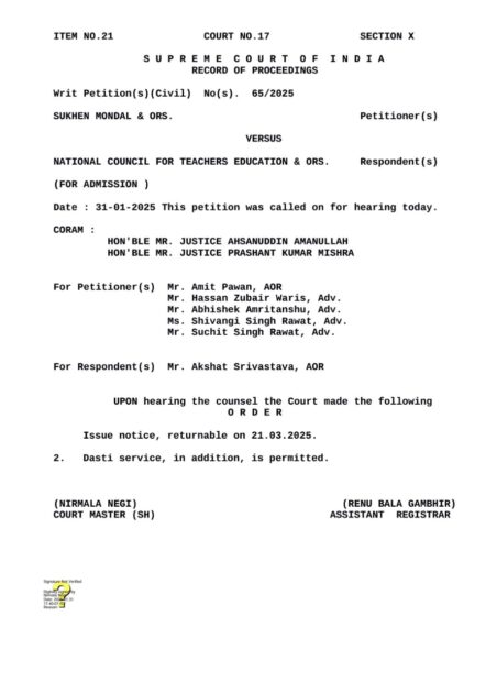 2. **एनसीटीई की अधिसूचना को अस्वीकार किया** – 2018 में राष्ट्रीय शिक्षक शिक्षा परिषद (NCTE) ने बी.एड धारकों को प्राथमिक शिक्षक बनने की अनुमति दी थी, बशर्ते वे छह महीने का ब्रिज कोर्स पूरा करें। सुप्रीम कोर्ट ने इस अधिसूचना को अस्वीकार कर दिया क्योंकि ब्रिज कोर्स उपलब्ध ही नहीं था।