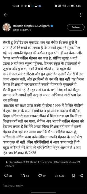 जरूर पढ़िए Bsa अलीगढ़ ने  की शिक्षकों के कार्य की सराहना ,बोला मुझसे इतनी मेहनत नहीं हो पाती ,किया नमन