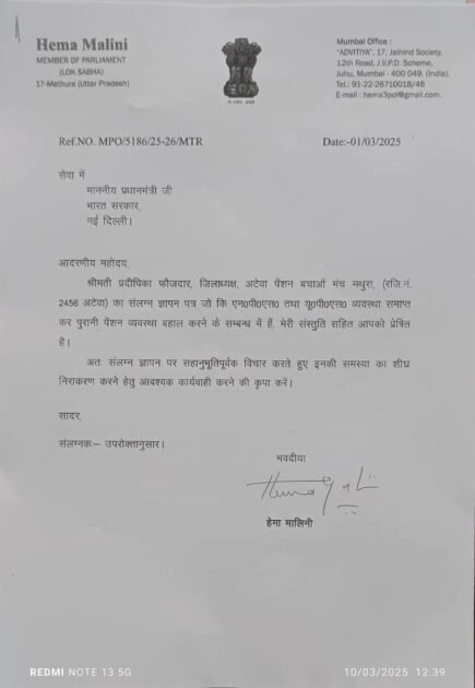 पुरानी पेंशन योजना (OPS) की बहाली लाखों सरकारी कर्मचारियों और शिक्षकों के लिए आर्थिक सुरक्षा और सम्मानजनक जीवनयापन का सवाल है। अटेवा पेंशन बचाओ मंच के प्रयास और सांसद हेमा मालिनी का समर्थन इस अभियान को और बल देंगे। अब देखना यह है कि प्रधानमंत्री नरेंद्र मोदी इस पर क्या निर्णय लेते हैं?
