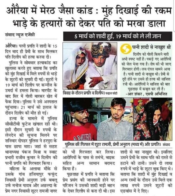 पति की हत्या, कन्नौज मर्डर केस, लव अफेयर क्राइम, शादी के बाद हत्या, प्रगति अनुराग कांड, सुपारी किलिंग, उत्तर प्रदेश क्राइम, प्रेमी के लिए हत्या