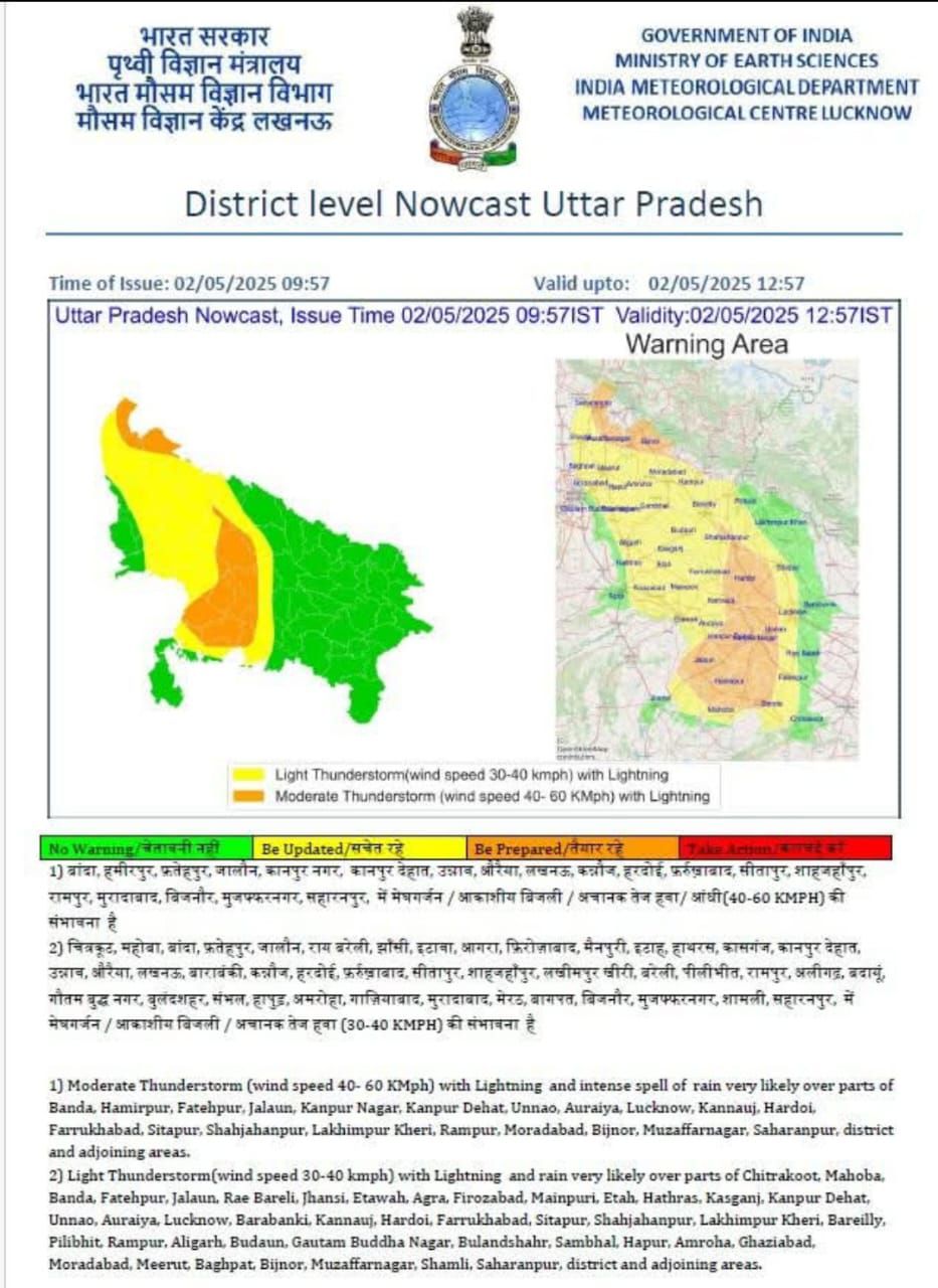 यूपी में मौसम का कहर: बारिश और बिजली गिरने का अलर्ट