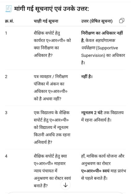 🧾 मांगी गई सूचनाएं एवं उनके उत्तर: