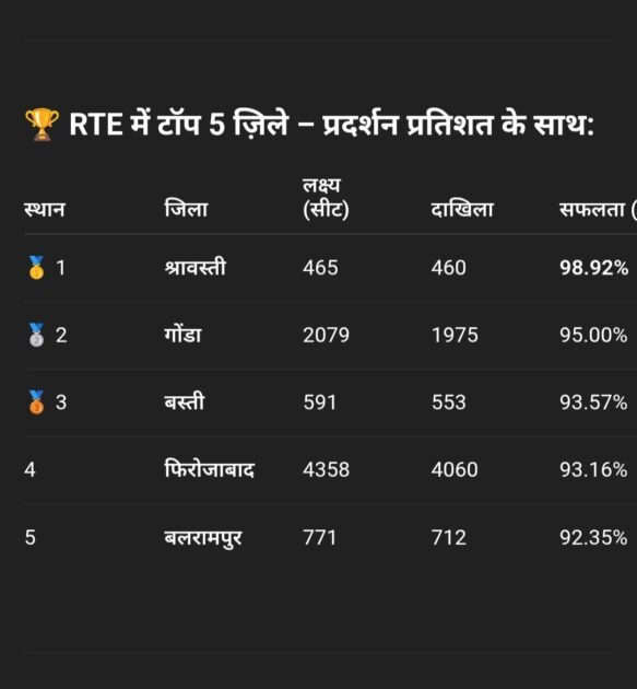 ЁЯПЖ RTE рдореЗрдВ рдЯреЙрдк 5 рдЬрд╝рд┐рд▓реЗ тАУ рдкреНрд░рджрд░реНрд╢рди рдкреНрд░рддрд┐рд╢рдд рдХреЗ рд╕рд╛рде: