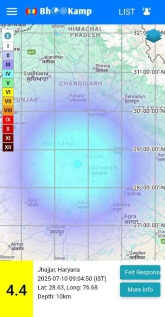 - भूकंप का केंद्र: हरियाणा के झज्जर जिले में, लगभग 10 किमी गहराई पर (Hindustan Times)।