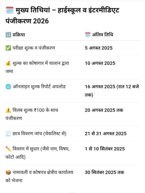 ЁЯЧУя╕П рдореБрдЦреНрдп рддрд┐рдерд┐рдпрд╛рдВ тАУ рд╣рд╛рдИрд╕реНрдХреВрд▓ рд╡ рдЗрдВрдЯрд░рдореАрдбрд┐рдПрдЯ рдкрдВрдЬреАрдХрд░рдг 2026