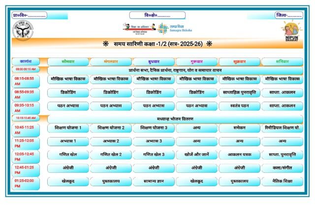 Home2025Augustनई समय सारिणी (time table) देखिए कब कौन सी क्लास में क्या पढ़ाया जाएगाclass12-time-table-2025-2.pdf class12-time-table-2025-2.pdf Leave a Comment / By Feature Writer / August 3, 2025 WhatsApp Channel Join Now WhatsApp Group Join Now Telegram Channel Join Now