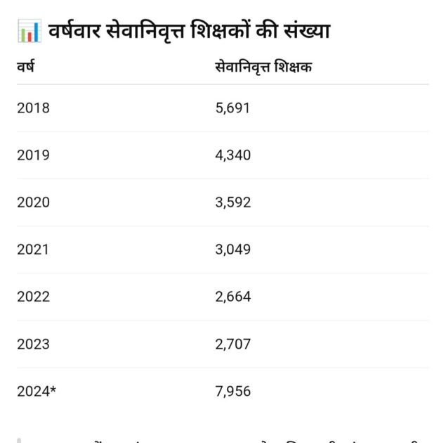 📊 वर्षवार सेवानिवृत्त शिक्षकों की संख्या