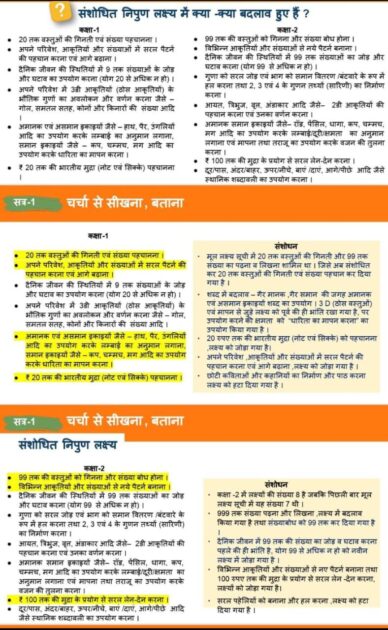 कक्षा 1 के संशोधित निपुण लक्ष्य में बदलाव