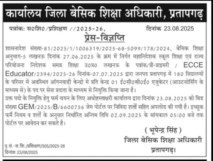 Home2025Augustप्रतापगढ़ और मथुरा की ECCE एजुकेटर की विज्ञप्ति जारी प्रतापगढ़ और मथुरा की ECCE एजुकेटर की विज्ञप्ति जारीBy Feature Writer / August 24, 2025
