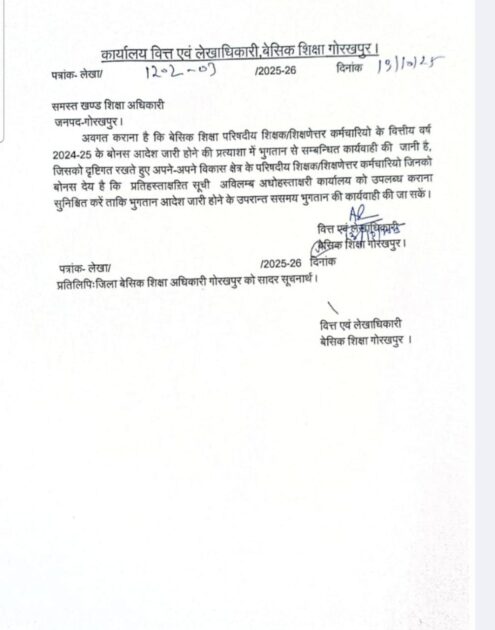 बोनस आदेश संबंधित आदेश हुआ जारी