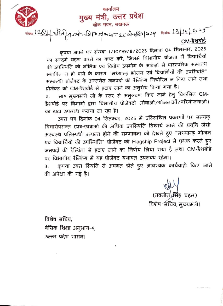 ЁЯеШтЬи рдордзреНрдпрд╛рд╣реНрди рднреЛрдЬрди рдПрд╡рдВ рд╡рд┐рджреНрдпрд╛рд░реНрдерд┐рдпреЛрдВ рдХреА рдЙрдкрд╕реНрдерд┐рддрд┐ тАФ CM рдбреИрд╢рдмреЛрд░реНрдб рдкрд░ рдЬрдирдкрджреЛрдВ рдХреА рд░реИрдВрдХрд┐рдВрдЧ рд╕реЗ рд╣рдЯрд╛рдпрд╛ рдЧрдпрд╛