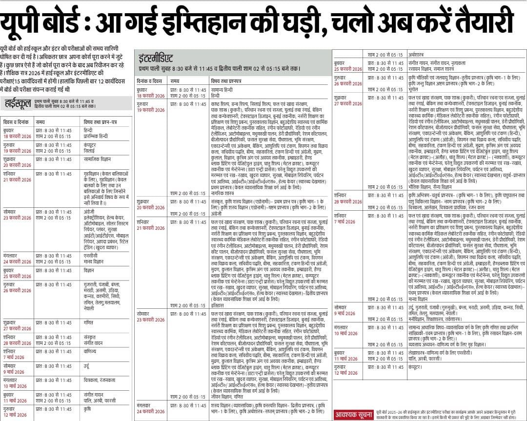 рдпреВрдкреА рдмреЛрд░реНрдб рдХреА рдкрд░реАрдХреНрд╖рд╛рдПрдБ рдирдЬрд╝рджреАрдХ рд╣реИрдВред рдЬрдм рдЖрдк рдкрд░реАрдХреНрд╖рд╛ рддрд┐рдерд┐рдпрд╛рдБ рдФрд░ рд╕рдордп рджреЗрдЦрддреЗ рд╣реИрдВ рддреЛ рдкрд╣рд▓реЗ рд╕рдмрд╕реЗ рдЬрд╝рд░реВрд░реА рд╡рд┐рд╖рдпреЛрдВ рдФрд░ рд╕рддреНрд░реЛрдВ рдХреЛ рдЪрд┐рдиреНрд╣рд┐рдд рдХрд░реЗрдВред рд╕реБрдмрд╣ рдФрд░ рджреЛрдкрд╣рд░ рдХреЗ рд╕рддреНрд░ рдЕрд▓рдЧ-рдЕрд▓рдЧ рд╡рд┐рд╖рдпреЛрдВ рдХреЗ рд▓рд┐рдП рд╣реЛрддреЗ рд╣реИрдВ тАФ рдЗрд╕рд▓рд┐рдП рдЕрдкрдиреА рдКрд░реНрдЬрд╛ рдХреЗ рдЕрдиреБрд╕рд╛рд░ рдпреЛрдЬрдирд╛ рдмрдирд╛рдПрдВред ЁЯХШЁЯХС