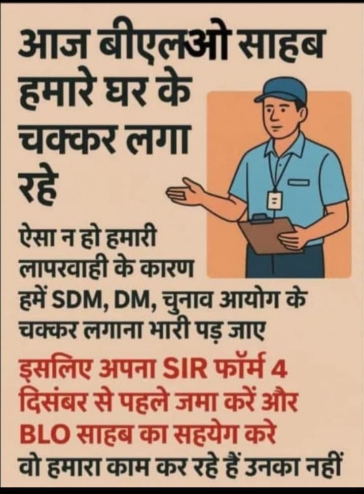 ЁЯСЙ 4 рджрд┐рд╕рдВрдмрд░ рд╕реЗ рдкрд╣рд▓реЗ рдЕрдкрдирд╛ SIR рдлреЙрд░реНрдо рдЬрд░реВрд░ рдЬрдорд╛ рдХрд░реЗрдВред