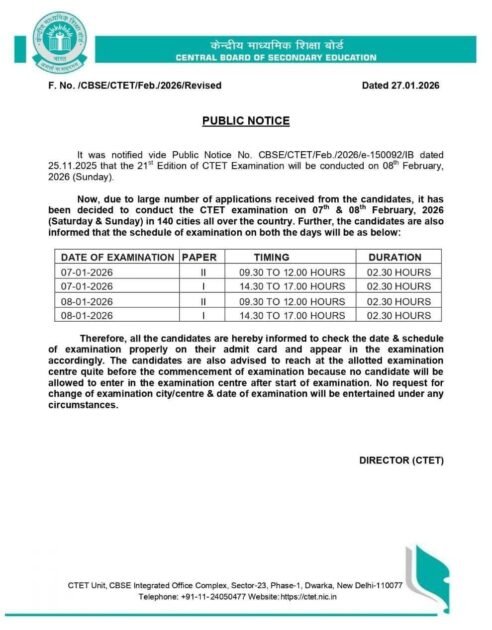 सीटीईटी परीक्षा 07-08 फरवरी को।