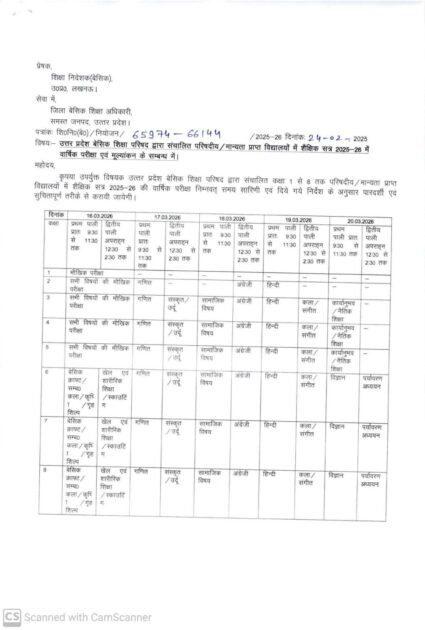 उत्तर प्रदेश बेसिक शिक्षा परिषद द्वारा संचालित परिषदीय/मान्यता प्राप्त विद्यालयों में शैक्षिक सत्र 2025-26 में वार्षिक परीक्षा एवं मूल्यांकन के सम्बन्ध में।