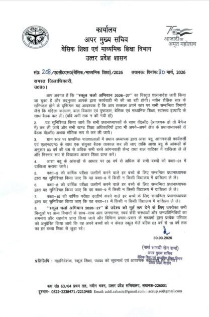 स्कूल चलो अभियान के लिए सचिव का आया आदेश,जारी किया कार्यक्रम और कार्यविधि